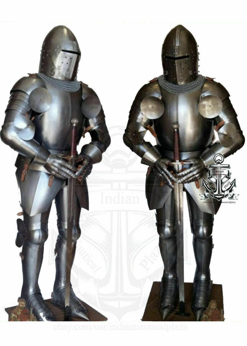 Plate armour is a historical type of personal body armour made from bronze, iron, or steel plates, culminating in the iconic suit of armour entirely encasing the wearer. The armor is in good shape, nothing is broken and the paint is in good shape. The natural way of development of the medieval fighting enthusiast goes from hockey safety gear through miscellaneous pieces of armour and to the full suit of armor at last. Full plate steel armour developed in europe during the late middle ages, especially in the context of the hundred years' war, from the coat of plates worn over mail suits during the 14th century. Distinct from humongous mecha in that powered armor is a suit worn on the body, while humongous mecha are vehicles that are controlled, either from a cockpit or with some unusual user interface.